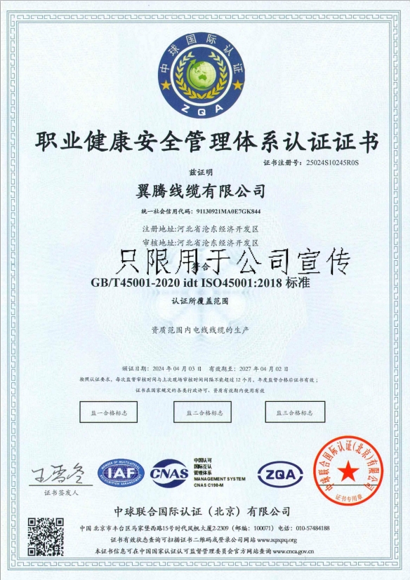 職業(yè)健康安全管理體系認(rèn)證證書