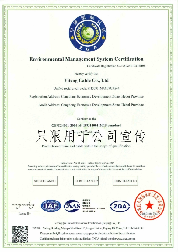 環(huán)境管理體系認(rèn)證證書