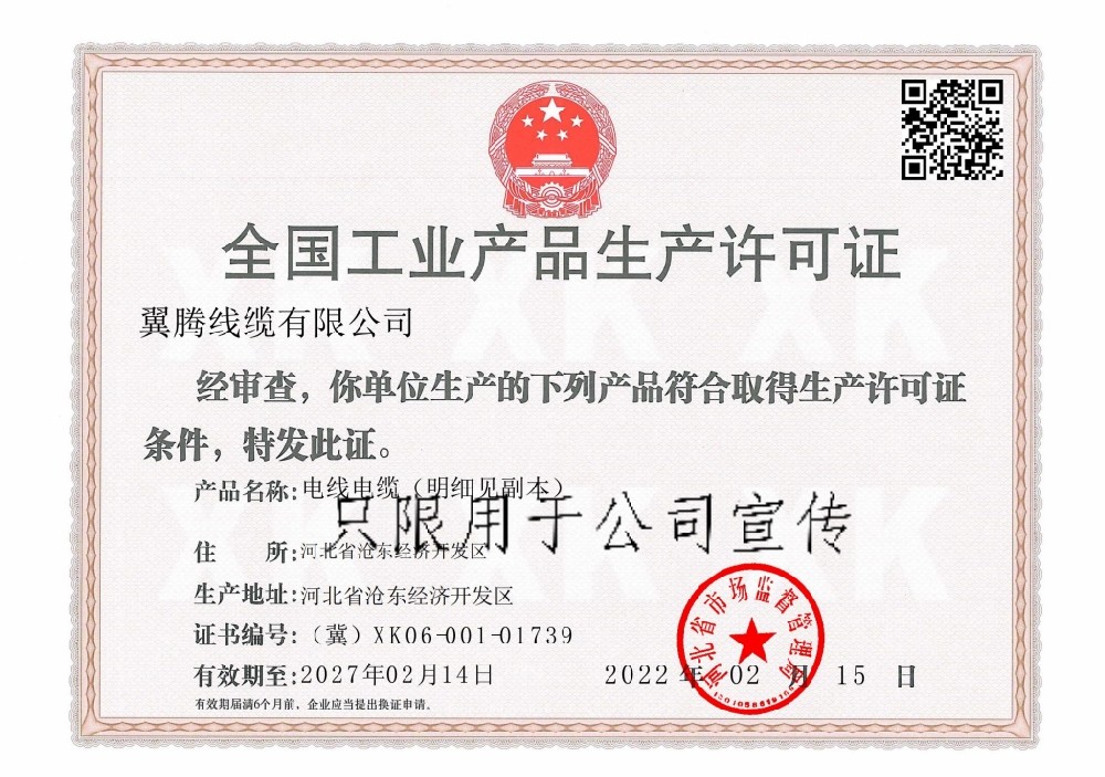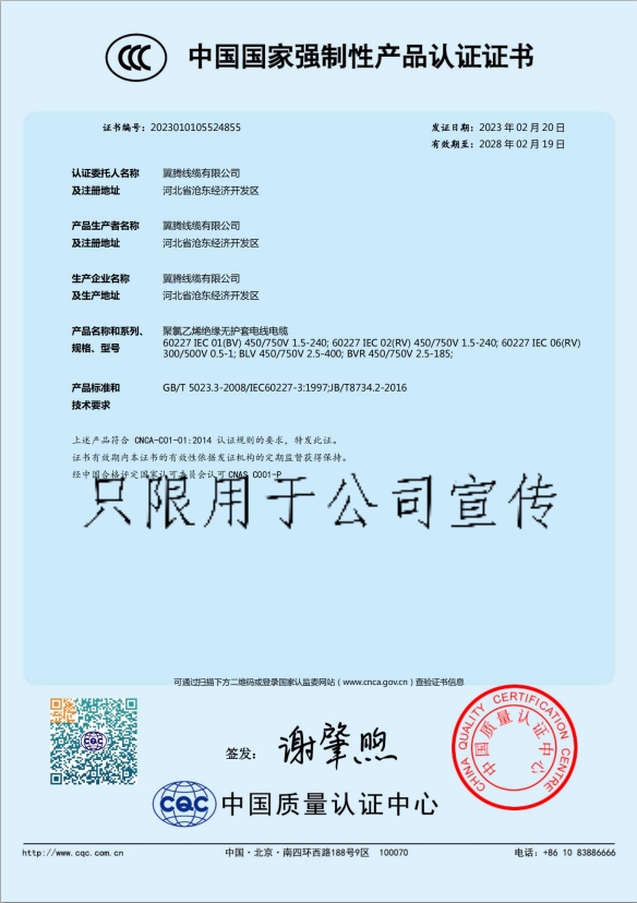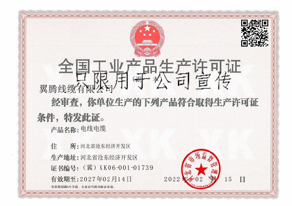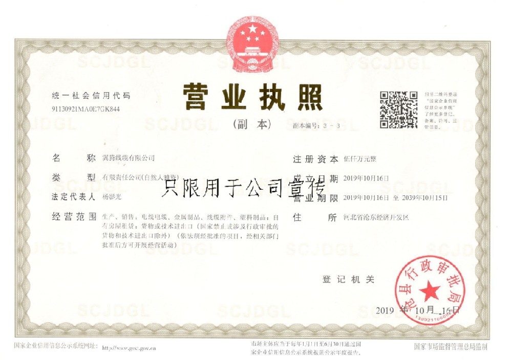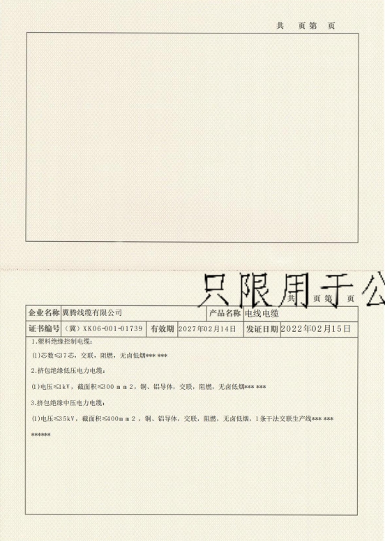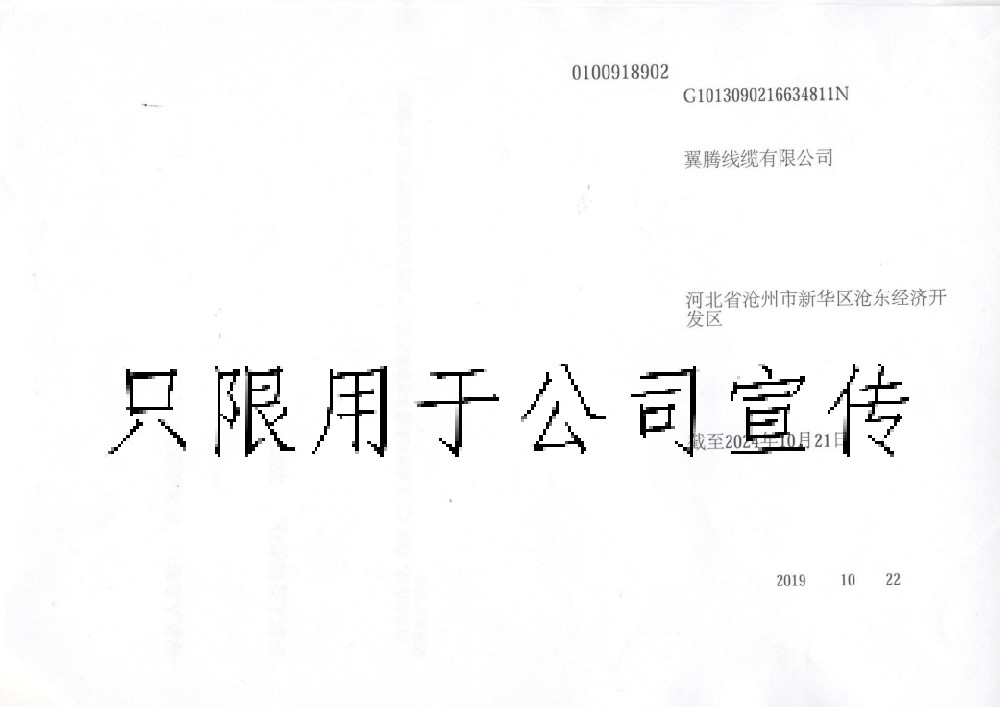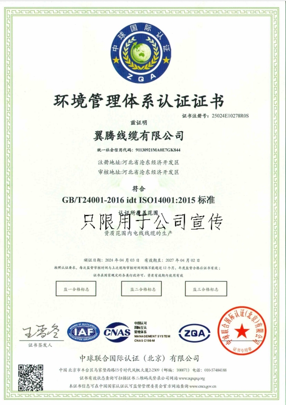 翼騰線纜有限公司證明